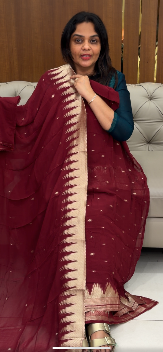IHA'S IN-HOUSE MUL CHANDERI TOP,BOTTOM AND DUPATTA - IHA 30954