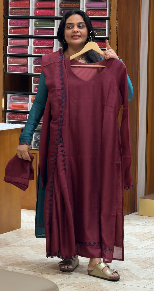 FORWARD SEMI RAW SILK TOP,BOTTOM AND DUPATTA - IHA 30953